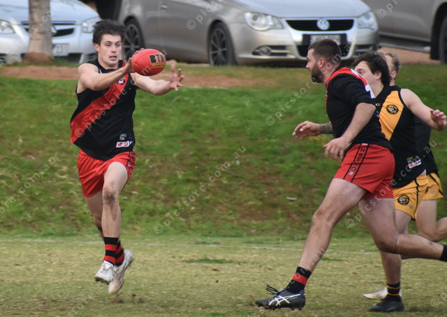 Hamley Bridge’s Skeet Manuell gets his hands on the loose ball. (491030)