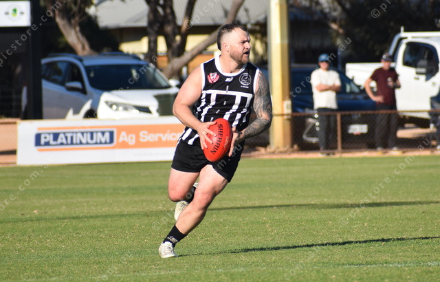 Mallala’s Braiden Tippett moves the ball into the midfield. (503283)