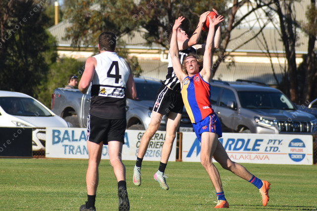 Mallala’s Charlie Baker takes the mark over Joel Bettess. (503283)