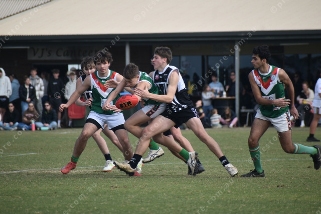 Mallala’s Lucas Pratt clashes with Virginia’s Jett Delany. (499747)