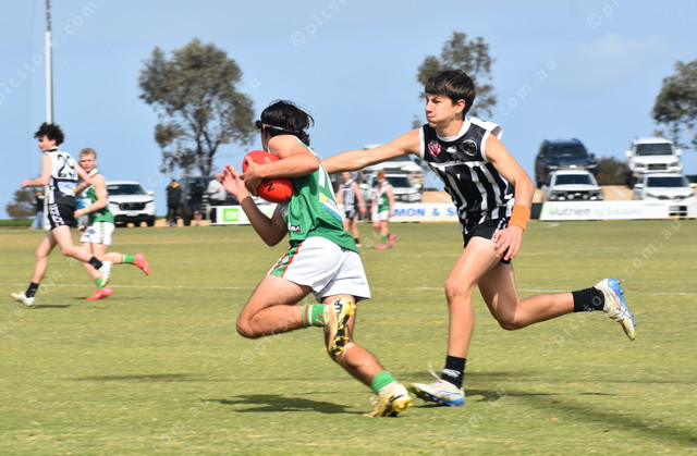 Virginia’s Chase Harris tries to elude the grasp of Mallala’s Max Lunn. (499747)
