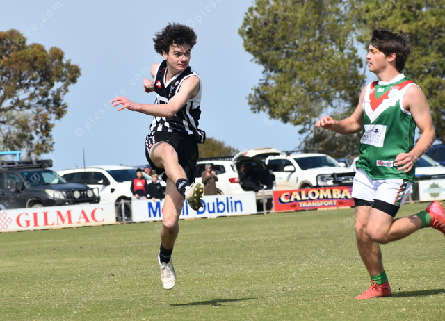 Mallala’s Max Aston kicks towards the forward 50. (499747)