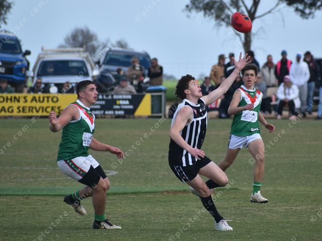 Mallala’s Ignatius Kain prepares to accept the incoming ball as Virginia’s Mohammed Baltagie looks on. (499747)