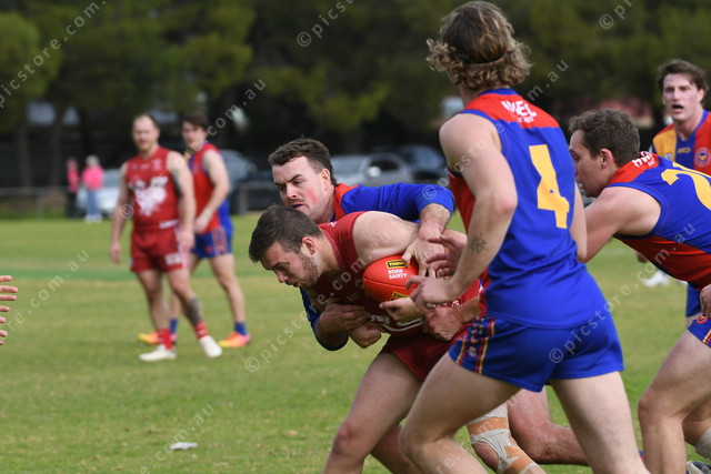 Rooster Noah Barnett gets caught up in the clutches of Eagle Henry Wright. (495376)