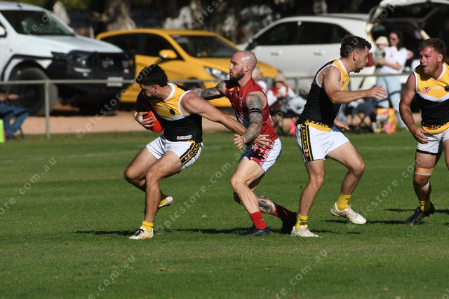 Rooster Aaron Dart grabs hold of Owl Isiah Glancey. (474725)