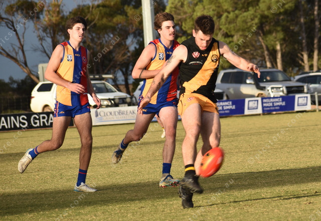 United’s Kobi Russell kicks the ball out of defence. (492473)
