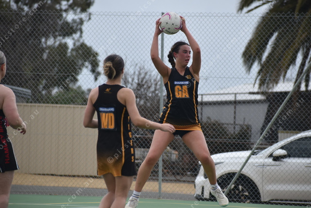 Long Plains’ Mia Higgins jumps up to catch the pass. (491029)