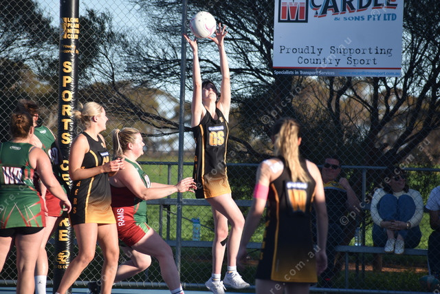 Long Plains’ Alysha Gliddon about to secure the pass in the circle and take a shot on goal. (498136)