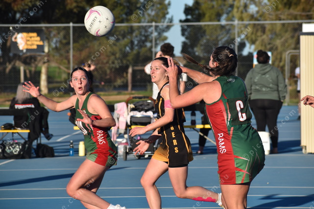 Virginia’s Nikia Whittingham open for the pass from teammate Djkeera O’Brien as Long Plains’ Ashlyn Sobey looks on. (498136)