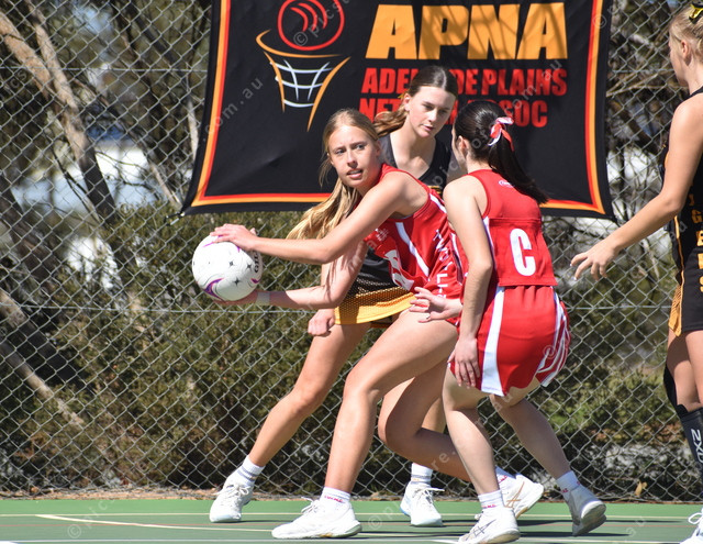 Alinta Grose wins the ball back for Two Wells in the 17 and Under preliminary final. (503284)