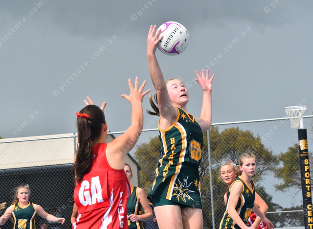 Balaklava’s Tahlia Zerk intecepts the ball before it could get to Two Wells’ Ruby Mackereth. (499746)