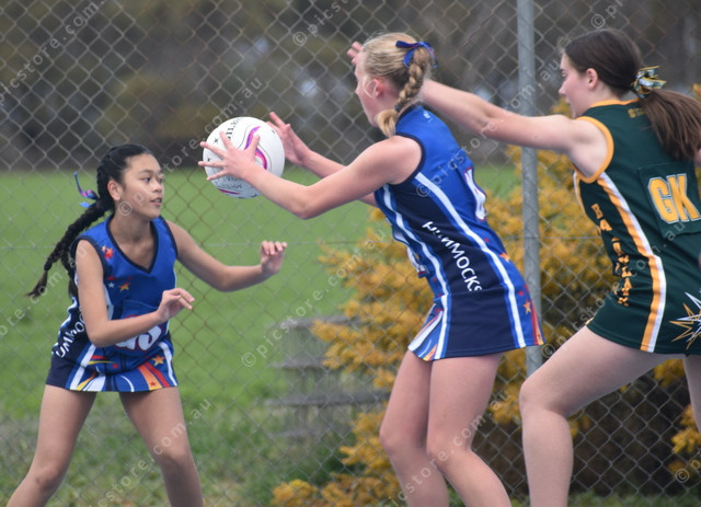 Hummocks’ Jasmine Segura passes to teammate Emilee Moulds. (499746)