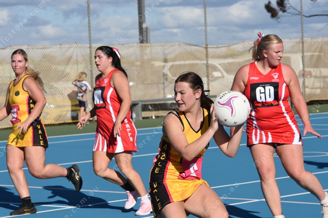 Mary Mannion looks for an Angle Vale teammate. (474749)