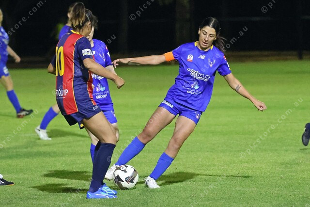 Gawler’s Luisa Noto dribbles past a Northern Wolves defender on her way to a haul of six goals in a 10-0 win. (Michael Slattery: 471931_01)
