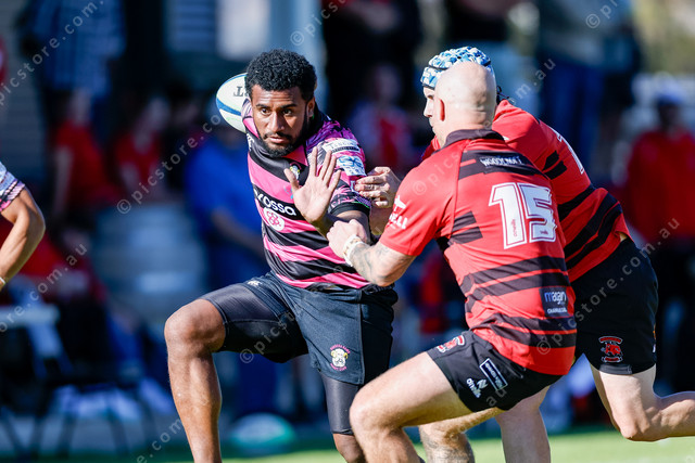 Sakiusa Sugumai prepares to push away the incoming defender. (Mark Willoughby: 472227_04)