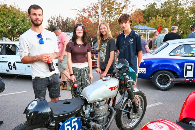 Matthew Oliver, Jasmin Oliver, Ivy Morgan and Ash Oliver looking over this old BSA bike. (471840_06)
