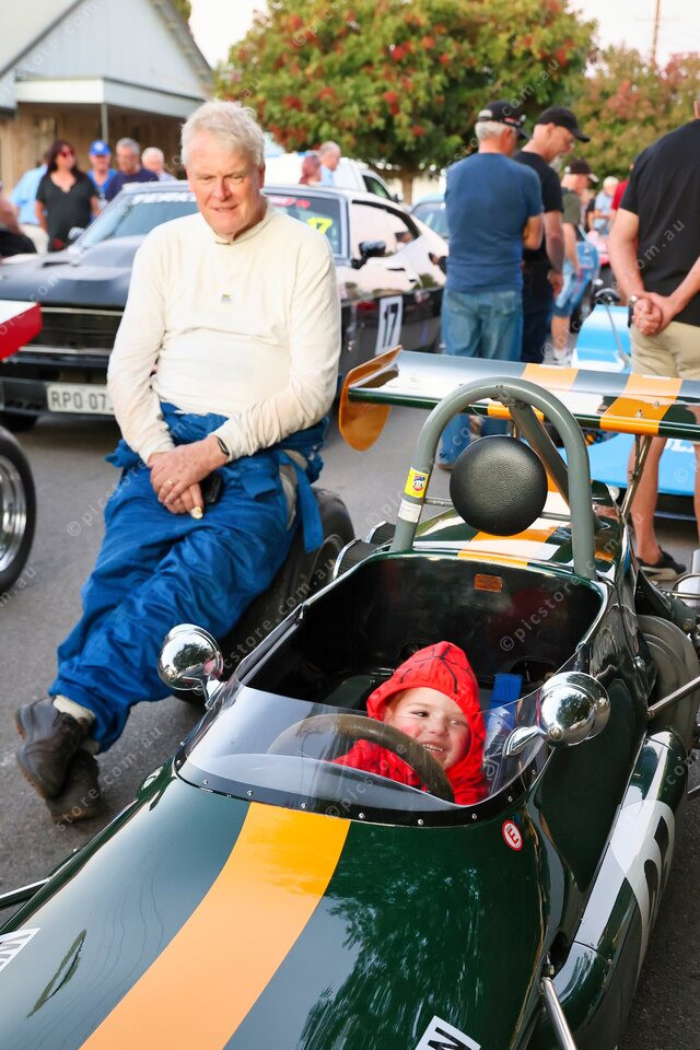 Wayne Wilson with his 1971 BT 35 Brabham with youngster William Vockins trying it on. (471840_09)