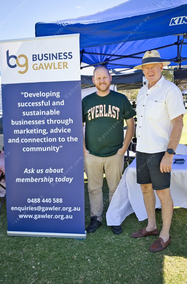 Business Gawler board member Wayne Fischer and chair Kevin Fischer at the Gawler Footy Frenzy on Saturday. (471851_03)