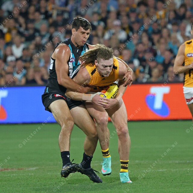Cochrane lays one of his two tackles against the Hawks. (473379_03)
