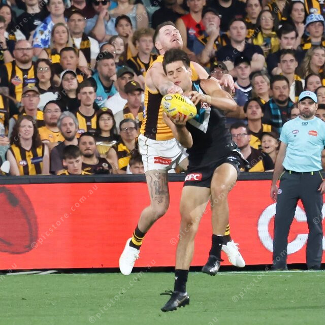 Cochrane gets a whack across the face while coming down with a mark. (473379_04)