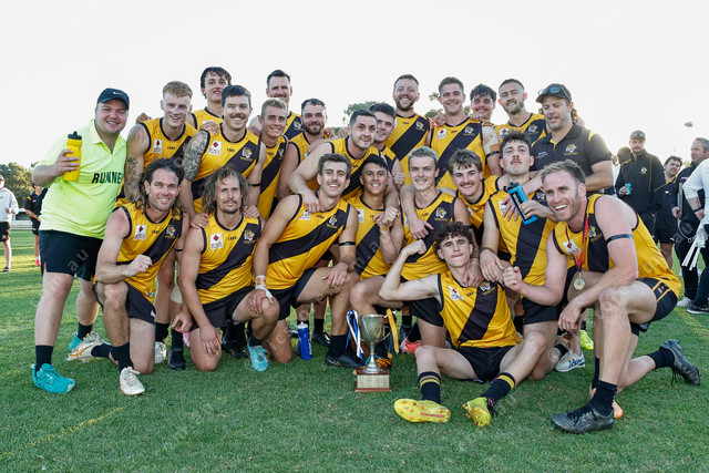 Gawler Central’s rising A grade side celebrate their Tom Symes Cup victory against rival South Gawler. (Mark Willoughby: 474771_01)
