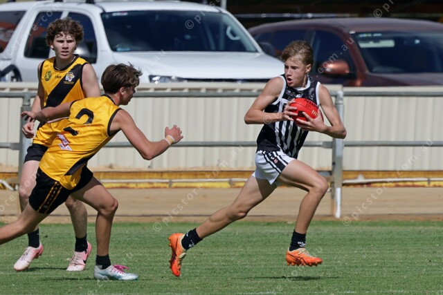 Riley Seiber turns on the jets to break away from Gawler Central’s Matthew Hay. (470483_04)