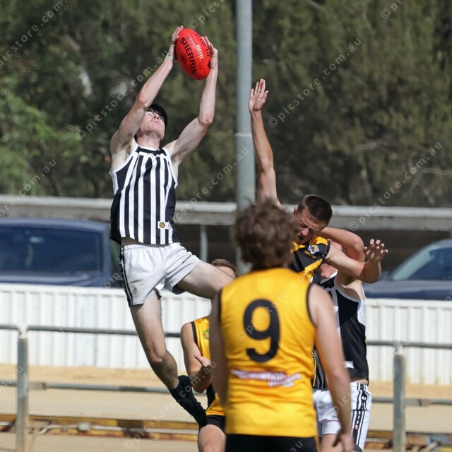 Tanunda’s Jude Van Der Zande floats in from the side and gets two hands on the high ball. (470483_08)