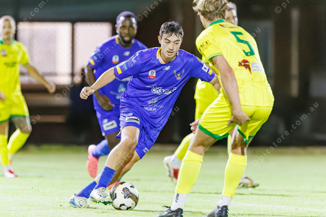 Two-goal Eagles standout Christian De Corso probes the Grove defence. (470652_02)