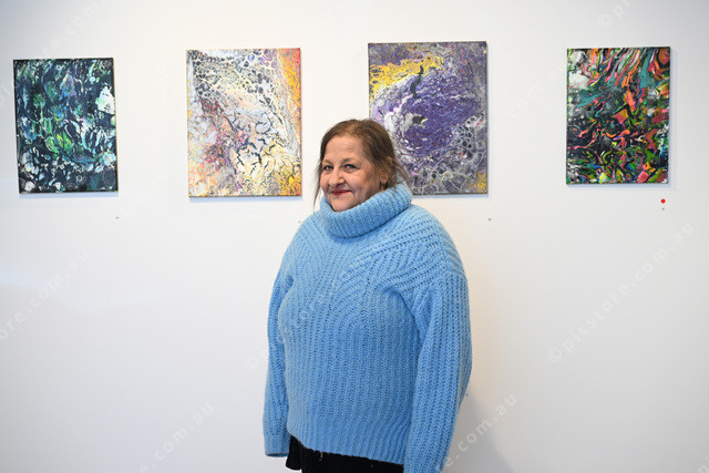 Pic of artist Debbie Van Ravenstein at her Pour Paint art exhibition. (Damjan Janevski). 488447_02