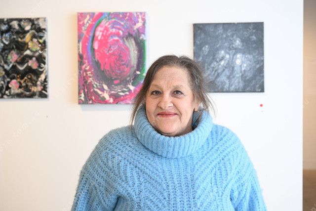 Pic of artist Debbie Van Ravenstein at her Pour Paint art exhibition. (Damjan Janevski). 488447_03