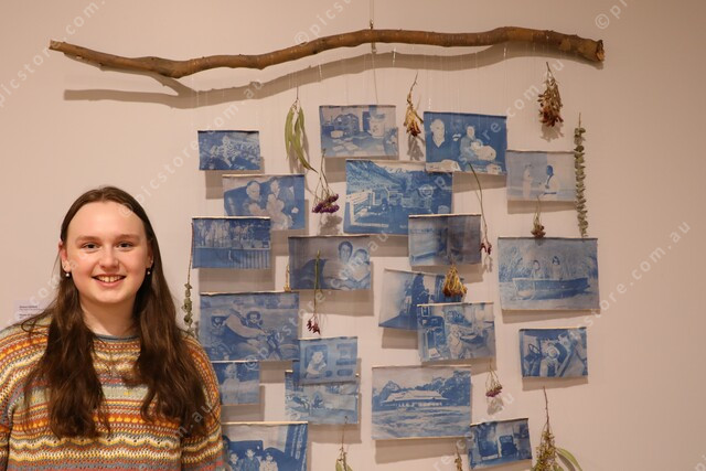 Grace Dohle, 17 from Tahara, VCE Hamilton and Alexandra College, with her art work, Blues of Moving Time.