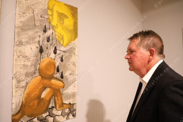 Bradley Bowen from Hamilton, admiring the students work.