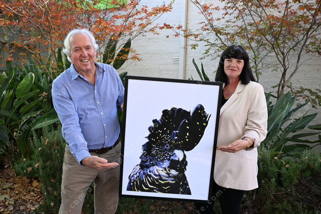 Pic of committee chair of Bacchus Marsh Rotary Peter Shilton and secretary Donna Martin holding artwork. Photo by Damjan Janevski. 478007_03