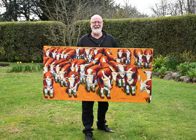 Woodend Lions Second Chance Art Sale. Pic of Barry McDonald, holding some of the artwork for sale. (Damjan Janevski). 505473_02