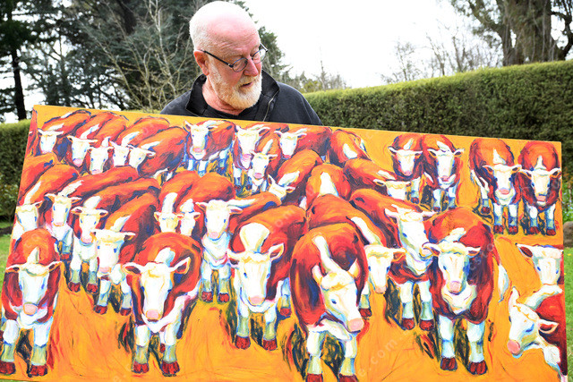 Woodend Lions Second Chance Art Sale. Pic of Barry McDonald, holding some of the artwork for sale. (Damjan Janevski). 505473_03