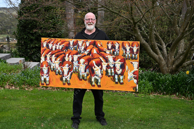 Woodend Lions Second Chance Art Sale. Pic of Barry McDonald, holding some of the artwork for sale. (Damjan Janevski). 505473_05