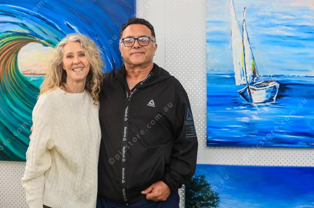 Encounter Bay artist Peta Starkey and Darryl Scaife were spotted at the Rotary Art Show in Victor Harbor. Photo: Jesse Ehlers. 385293_04