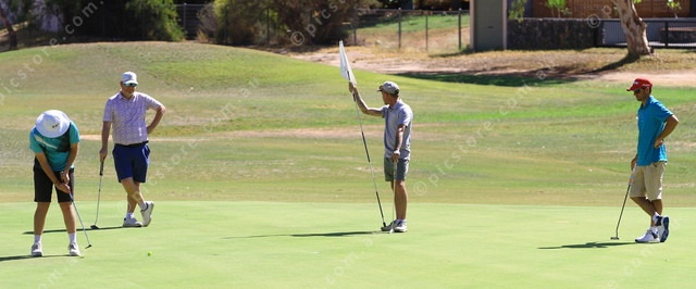 HALF WAY: A group putt out on the ninth hole. (PIC: PHIL WILLIAMS 465026_01)