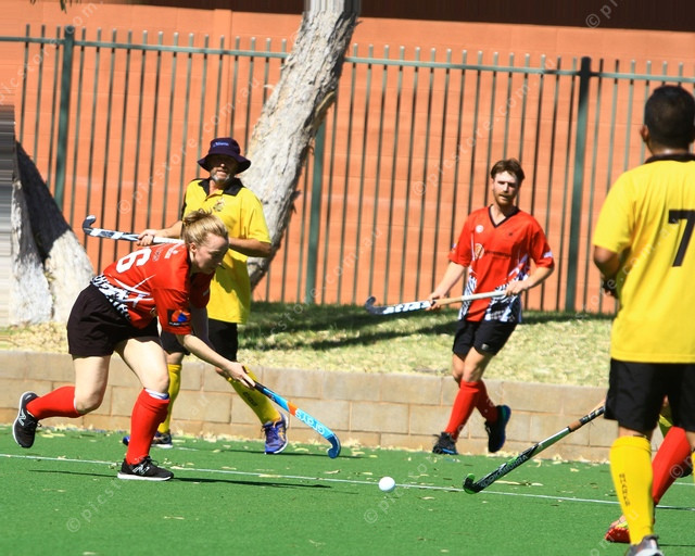RECEIVE: Jenna Hoare receivies the ball in the Desert Sharks defensive line. (PIC: PHIL WILLIAMS 429047_01)