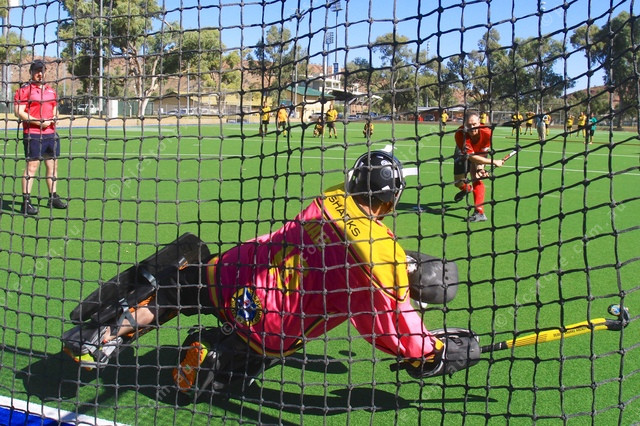 DIVE: Desert Sharks goalkeeper, Dale Hiscox dives to save a shot from Shannonn Loughton in overtime shootout. (PIC: PHIL WILLIAMS 429047_11)