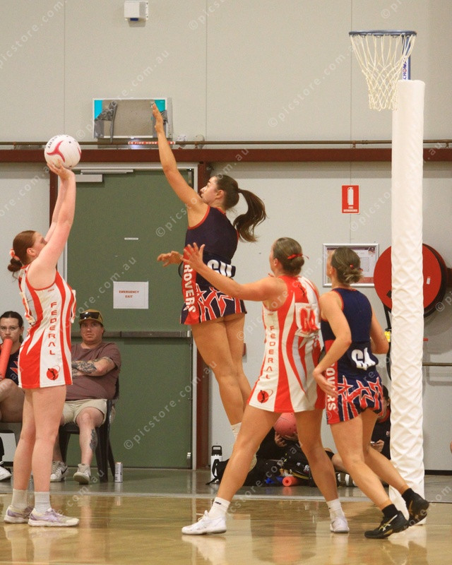 FLY A Rovers defender flies as she attempts to prevent a Feds score. (PIC: PHIL WILLIAMS 505048_02