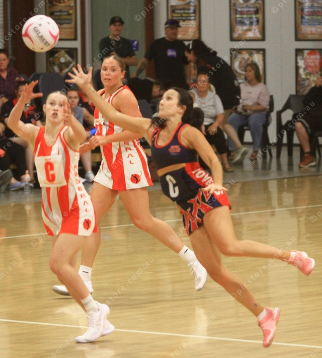 ATTEMPT: Rovers centre flies as she attempts to knock away a high pass to her Fedss opponent. (PIC: PHIL WILLIAMS 505048_08)