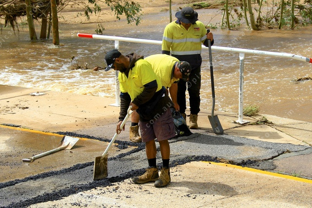 REPAIRS: ASTC workers make repairs to the road surface of the Wills Terrace causeway. (PIC: PHIL WILLIAMS 534725_02)