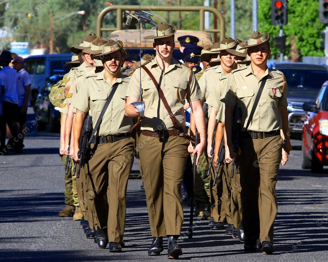 FORM UP: Servicemen march to form up before the parade start. (PIC: PHIL WILLIAMS 474244_02)
