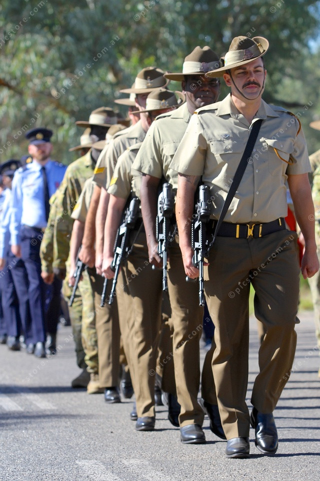 IN STEP: Servicemen march in step along Schwarz Cres on the way to ANZAC Hill. (PIC: PHIL WILLIAMS 474244_09)