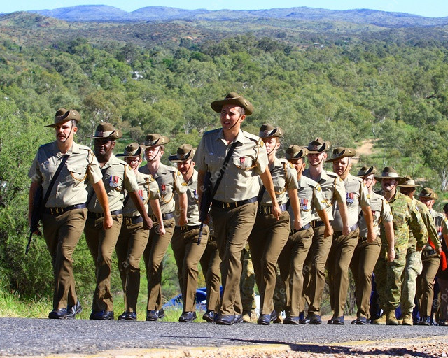 CLIMD: The West Macs make a glorious backdrop as the marchers climb ANZAC Hill. (PIC: PHIL WILLIAMS 474244_11)