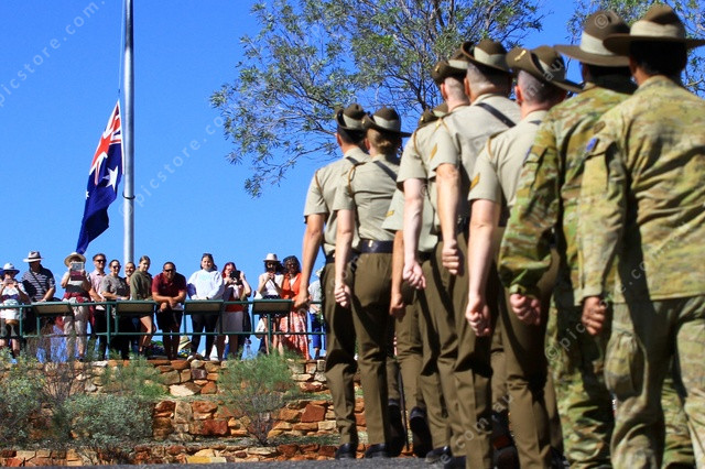 APPROACH: Marchers approach the top of ANZAC Hill as a large crowd watches on. (PIC: PHIL WILLIAMS 474244_13)