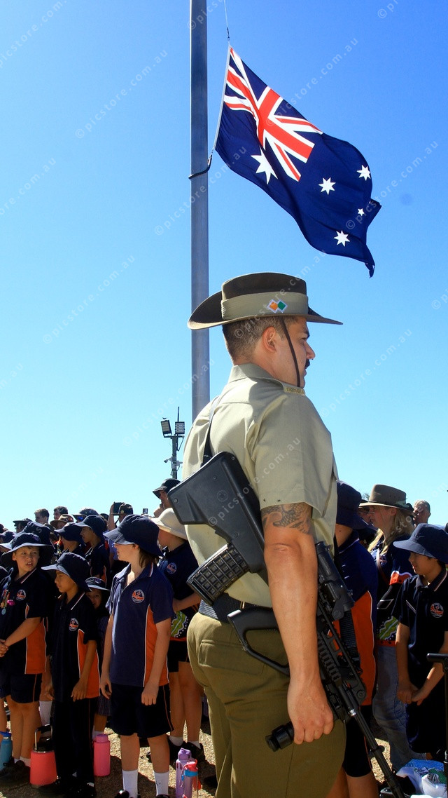 HALF MAST: The Australian Flag flies at half mast above a member of the Catafalque Party. (PIC: PHIL WILLIAMS 474244_23