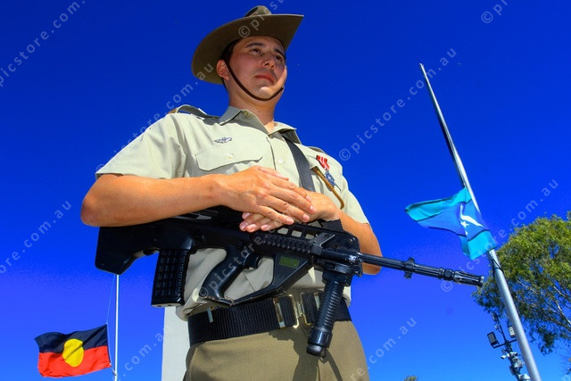 FLANK: The Indigenous and Torres Strait Island flags flank a member of the Catafalque Party 474244_25