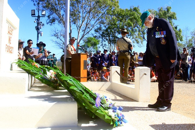 MOMENT: Kevin Rockemer takes a moment after laying his wreath on ANZAC Day. (PIC: PHIL WILLIAMS 474244_28)
